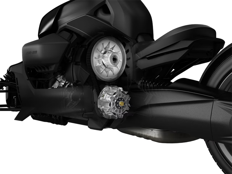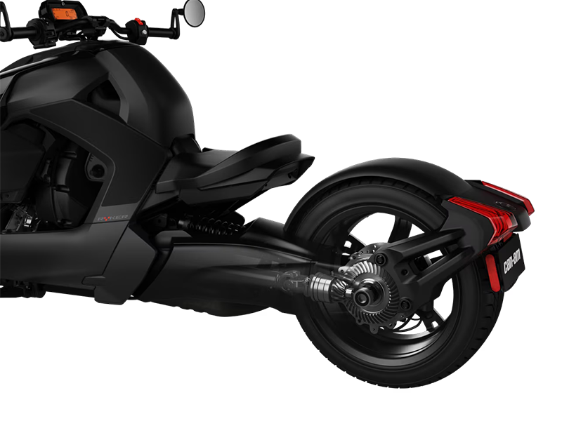 It uses a shaft final drive, which reduces maintenance and makes it suitable for light off‑road excursions — something not recommended on the Spyder due to its belt final drive.