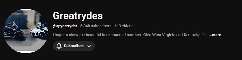 A personal Can‑Am Spyder travel vlog by an experienced rider based in Pennsylvania, USA. It includes some gear reviews and general Spyder‑related topics, but is mainly focused on documenting trips across the American continent.