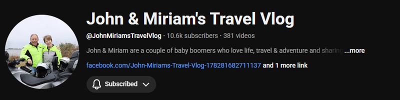 A retired couple who bought a Spyder and have been actively touring across the USA. There is some maintenance and DIY content, but the focus is mainly on travel.