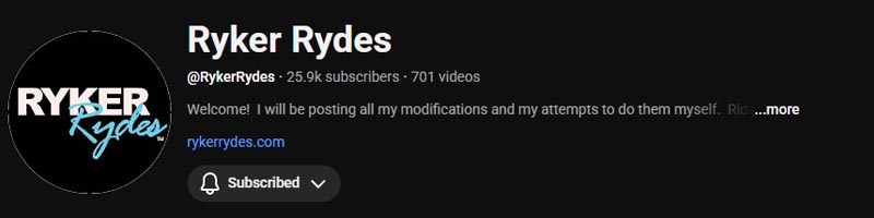 This channel began as a place to share the experience and customization of a Can‑Am Ryker by its American owner Beth. It is now mostly focused on Spyder rides and content, with lots of tips, tests, comparisons, and gear reviews, as the channel has also evolved into an online accessories store.