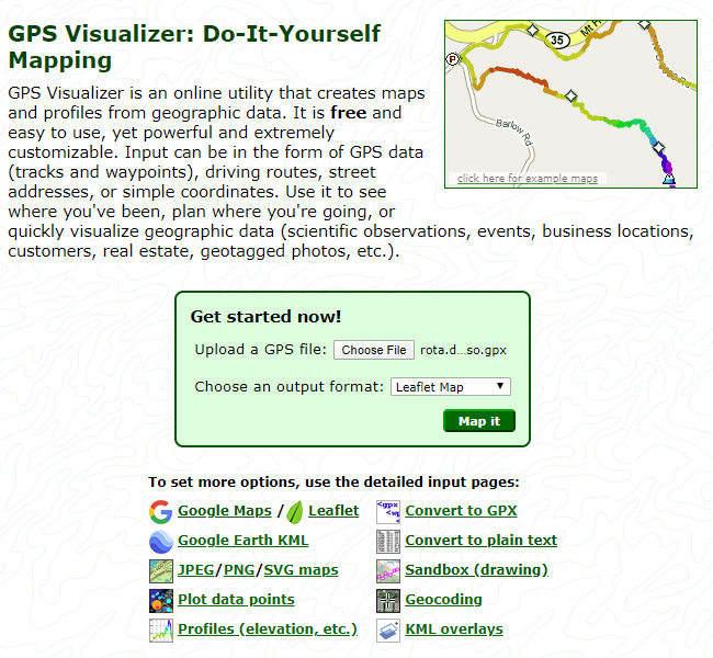 It is also possible to view these itineraries directly in the browser using GPS Visualizer.