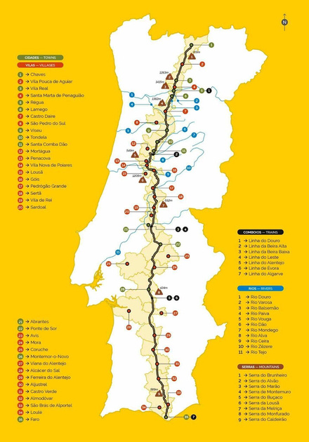 - 11 rios: Douro, Varosa, Balsemão, Paiva, Vouga, Dão, Mondego, Alva, Ceira, Tejo, Zêzere.