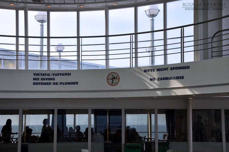 Largámos a tralha (o essencial, o resto ficou lá em baixo trancado nas malas das motas) e fomos conhecer o navio. Tínhamos acesso livre a uns dois pisos do barco, mais a cobertura.