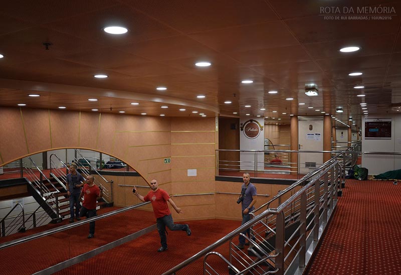 Estava um gelo do cacete naquele restaurante, de modo que não demorámos muito a sair dali. Mais uma volta ao barco e reparámos que tinham aberto a sala de espectáculos na proa. Estava pejada de marroquinos e lá também se anunciava um espectáculo de música ou dança árabe, mesmo a propósito. Fomos espreitar lá fora de novo, estava noite escura. Voltámos ao camarote e eu decidi logo por lá ficar até de manhã. O Rui e o Miguel ainda queriam ir espreitar a musiqueta marroquina… Mas não se demoraram muito.