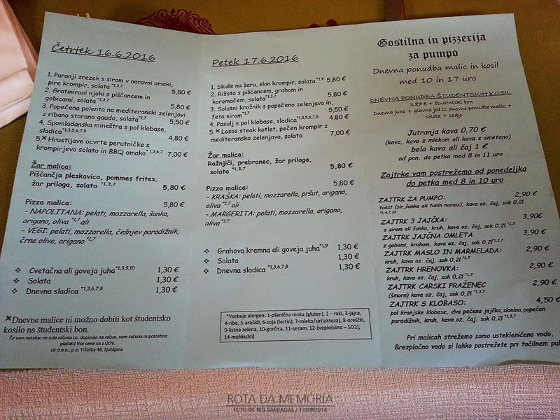 A casa tinha um ar “à antiga”, correcto, mas nada de excepcional. As mesas estavam esparsamente distribuídas por uma sala ampla. Sentámo-nos numa lateral, sendo que num dos cantos já estava um grupo de Eslovenas trintonas a jantar. E de resto mais nada, apenas mais dois ou três indivíduos na esplanada exterior. Muito calmo por aqui.