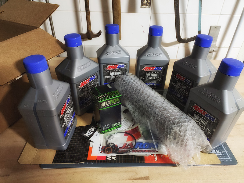 Para a revisão anual repetiu-se a fórmula do ano anterior. Novamente prescindi do kit de substituição de óleo da marca (a rondar os 100€, referência #219800356) e optei por 5 embalagens de óleo (4.7 litros) de Amsoil Metric SAE 10W40. Com filtro de óleo e anilhas a brincadeira não chegou aos 115€ um valor muito equivalente ao kit com um óleo supostamente superior (este 100% sintético).
