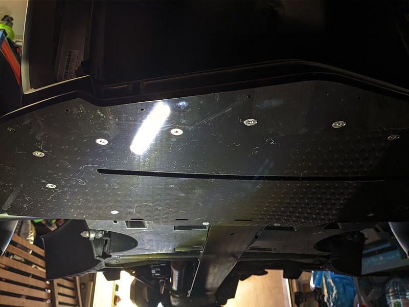 A protecção é basicamente uma placa de HPDE (ou polietileno de alta densidade). Um termoplástico com excelente resistência ao impacto, tracção e torção. É fixada por meio de parafusos na parte inferior da Spyder servindo assim de zona de impacto.