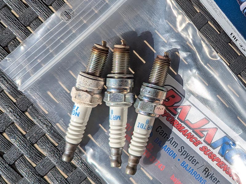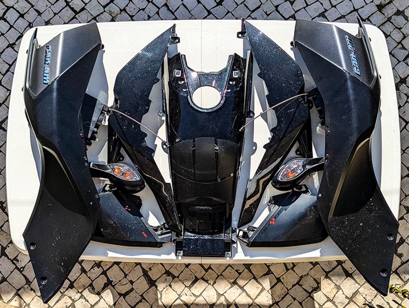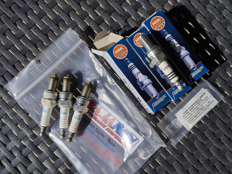 No inicio de 2025 a Spyder estava a cerca 500km dos 50.000 e foi tempo de trocar velas, filtro do sistema EVAP e filtro de gasolina. Uma tarefa nada fácil que obriga a desmontar todos os painéis , espelhos, ópticas e filtro de ar...