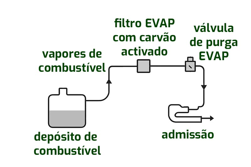O sistema EVAP é mais complicado e funciona com o motor parado e a trabalhar, evitando a libertação na atmosfera de hidrocarbonetos prejudiciais e melhorando também a eficiência ao reaproveitar os vapores de gasolina. Todos os motores modernos à gasolina são obrigados a usar este sistema...