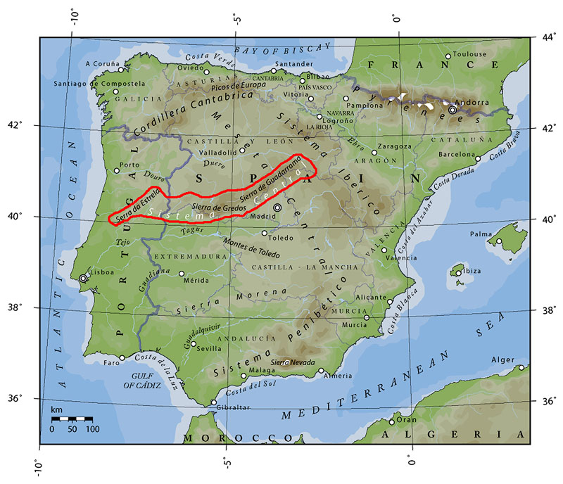Situada a Sul de Salamanca, entre Ávila e Cáceres, integra a cordilheira montanhosa do Sistema Central Ibérico da qual a Serra da Estrela também faz parte. Tem a sua altura máxima no Pico do Almanzor que aos 2592 metros é o ponto mais alto de toda a cordilheira.